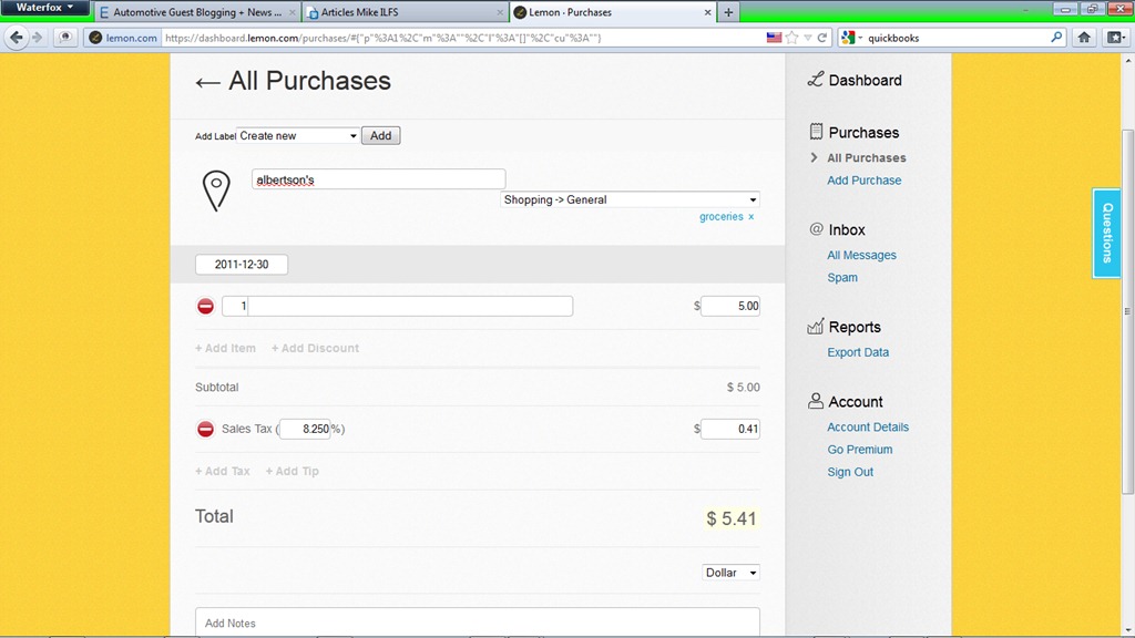 | Organize Receipts and Track Expenses Online: Lemon Posted: 08 Jan 2012 05:00 AM PST Lemon is a free service to organize receipts online and keep track of your expenses easily. Whether you itemize your deductions on your taxes, or you just like to know exactly when and where you spend your money, a program that helps you track your expenses is a good idea. Lemon is such a program. Limitations in Free VersionYou have three options with Lemon, the free version, and two premium versions, costing $49 and $99 a year ($4.99/month and $9.99/month, respectively). The free version of Lemon is advertising driven. That's to be expected. The free version gives you some features that are pretty helpful for the busy person in today's world. If you own a smartphone (Blackberry, Windows phone, iPhone, and Android), you can snap a picture of a receipt, and upload it to the Lemon website. It will be added to your receipt collection. You can also generate a spending report summary, capture specific information from your receipts, manually enter your receipts on the website, and a few other features, including a unique @Lemon.com email address. The ability to capture specific purchase details such as items purchased, taxes and tips paid, is reserved for only the high end $99 a year subscription. From what I've read in the Lemon forums, this is a recent change and has made many of their users, EX-users. With the increase in identity theft incidents, I'm hyper-vigilant when it comes to my financial details. I don't like the idea of giving purchase details to an unknown entity like this. Letting a commercial website know my spending habits is just asking to open my email account to mountains of spam, at the best, and waking up to find money missing at the worst. I track my expenses using Quicken and Quickbooks. Almost all of my spending is done using my Paypal card, so I get an email for every purchase I make. At the end of every day, I log those purchases into Quicken and Quickbooks and then I verify them on my Paypal account. Related posts: