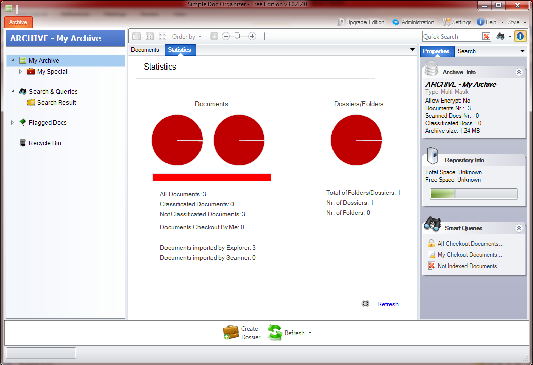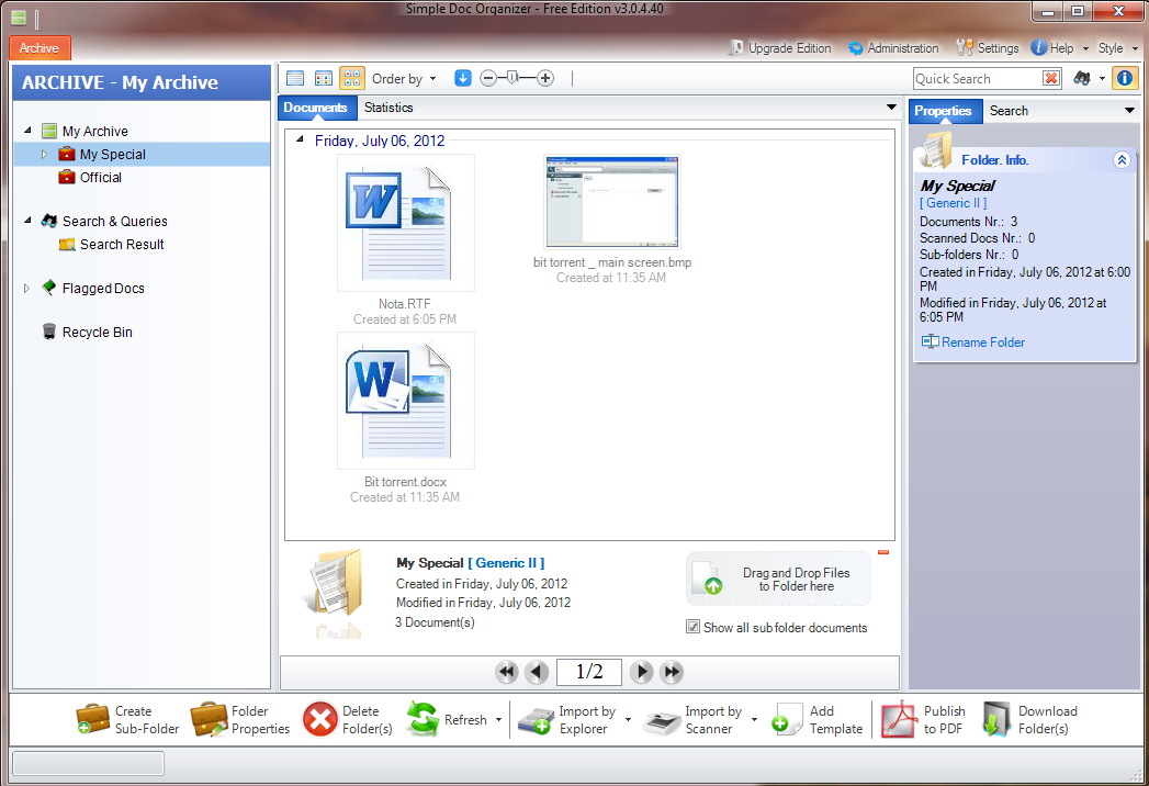 | Free Document Management with Simple Doc Organizer Posted: 12 Jul 2012 02:00 PM PDT Simple Doc Organizer is a useful, free office tool which can help you to manage documents easily. It comes with a plain and simple user interface which makes it possible for almost everybody using the system to use it and manage documents. Using the software you can store, index or classify all your documents easily. Simple Doc Organizer also enables you to customize your documents meta-data as per your business or personal requirements. This free document management software is available in 5 versions where the basic is available as a freeware. Installing Simple Doc OrganizerSimilar to the feature the program has been made to deliver the installation process is very simple. However, being a big file it would take some time to be downloaded and further install on your system. The download file could be downloaded from the developer's website here. After you have download the free version you would be required to run the setup file on your system. As the setup requires a few more files to be downloaded it would additionally download these files during the setup. It is followed up by creation of login credentials which you would be required to setup before you could use them for your program. Once you are done installing the Simple Doc Organizer you are ready to launch and run the program on your system. If you are interested to check out some more document management software, you can try DocMGR, Doxo and Benubird PDF reviewed by us. Using this free document management toolThe moment you launch the program you would be asked to insert the password which you had assigned to the software while registering during the installation process. Once you insert the right password it would open up a new screen with numerous options all over. The screen appears to be attractive and once you have a look at the options closely you would find every function that you could use with this particular software. To begin you need to create specific folders where you wish to save files inside for example if you wish to separate your official files and folders in one folder and lock them here you can create a dedicated folder for that. In order to create a folder you would be required to click on the Create Dossier appearing at the bottom of the main screen. After clicking on it a new popup window appears asking you to insert the dossier name and the option to save it. You may create as many folders and dossiers you may want to depending on the level of segregation you wish to maintain. After you are ready to save files within respective folders you can choose the specific folders from the left of your window where all your dossiers would be available in a listed format. In order to start adding you will have to browse to the specific folders or files and drag them to the space which says ''Drag and Drop Files to Folder here'' which is available at the centre of your program window. The software comes with hosts of other options as well which have been listed at the bottom of the dossier window. It includes the option of creating subfolders, accessing folder properties, deleting folders, importing images from a scanner and much more. In case you want to do any modification to the functionalities of the software or the way it behaves you would have to click and open the settings panel from the top of the main window. When you are here you could change the general settings, mail information, paths where you save your documents and a few changes to the program as per your choices. There is another major area which you may need to access when you are a regular user of this software i.e. the Administration panel. Here you have four broad options which are further subdivided into many other settings which help you to manage the software and your general preferences in a better way. The Admin masks you have the option of adding or deleting classification masks which is only available for the paid versions. The other options include the adding/deleting option of flagging files, using templates, and much more. Overall Simple Doc Organizer is a pretty decent software that could help you arrange your files and manage them effectively. No related posts. Free Document Management with Simple Doc Organizer was originally published at I Love Free Software |
