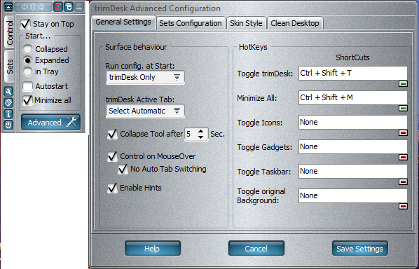 - Hide Desktop Icons, Windows, Wallpaper and Taskbar: trimDesk