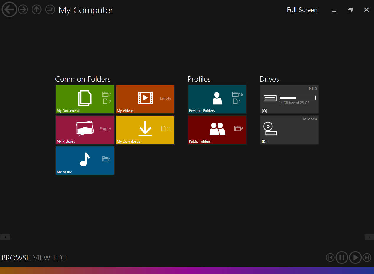 files and folders that you have stored on your computer. Files are gonna be opened in their respective applications, just like they would be when you double click on them inside Windows Explorer. In the upper left corner there are navigational arrows, and notice on the image above that folders which have images contained within them will show floating image previews, Desktop folder has an image floating. In-built image viewer allows you to view your photo collections in a new and interesting way: Images can be navigated easily with the left and right navigational buttons, or you can open them fullscreen in a slideshow. If you want, you can activate the taskbar so that you can see the system tray and also so that you have access to the Windows Start menu. You can do this by clicking on the clock in the upper right corner when you’re in fullscreen. ConclusionImmersive Explorer is a very modern looking Windows user interface which can be easily used even on touch screens. Touch screen is where using Immersive Explorer makes sense the most, since it’s optimized for them and has the workflow desirable for touch screens. Desktop users who are interested in seeing how the new Window 8 user interface looks like can do that without downloading and installing Window 8, just download this free Windows Explorer alternative and you’ll get the basic look and feel of the new Window 8 Style UI, even on Window 7. Related posts: