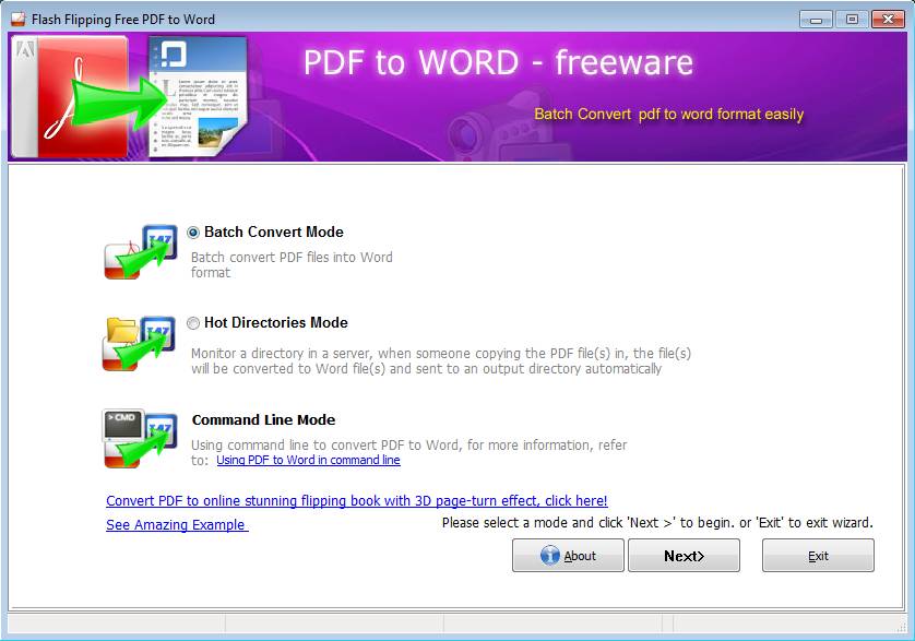 | Flash Flipping Free PDF To Word: Free PDF To Word Converter Posted: 22 Nov 2012 06:00 PM PST Flash Flipping Free PDF to Word is a free PDF to Word converter, which comes with support for batch conversion and hot directories mode to convert PDF to Word. For those who are interested in more control over the PDF to Word conversion process, there’s also a command line mode, where you can use the command prompt to customize the conversion to the max. Image above is the default interface of this free PDF to Word converter. To setup a conversion you’ll have to go through a wizard and the three main modes of operation that we mentioned have to be selected in the first step of the conversion process. Key Features of this Free PDF to Word Converter: