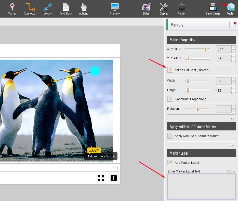 Created presentations can be either played as a standalone SWF Flash application, which can be played on pretty much every computer where Flash player can be installed, or as HTML5 which will work on any modern web browser. How to Create Presentations Online with Label 59?Start by clicking on the Create Presentation button which is gonna activate the full set of tools that you need for creation of presentation, it might take some time, so be patient. Now you need to click on the Add image button to start uploading images that you want to use in your presentation. Change the Header text of the slide, and then select the Marker to add a label on the image. You can also use other elements like for example Connector, Arrow, Text Block, if you need to add those to your presentation. Arrange them to your liking and then edit their values in the right sidebar like we did it, as shown in the image above. New slides can be added by clicking on Slides and then clicking on Add. When you’re done setting up everything, click on the Publish button. Depending on what format you’ve generated the presentation, open it up in your web browser or using the Flash player, and enjoy watching your own presentation. Selected text will for example only appear when you hover your mouse cursor over it. ConclusionLabel 59 is a very useful online presentation maker which you can use to create something a bit more different and add interactivity to your presentations. It’s free for up to 10 slides with upgrades possible where you have no restrictions whatsoever. Created presentations can be easily exported and viewed/played pretty much everywhere. Try it and see how interesting Label 59 is. You may also try some free online presentation software reviewed by us. Label 59: Free Online Presentation Maker With Labelling was originally published at I Love Free Software Related posts: