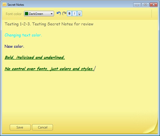 | Password Protect Your Notes with Secret Notes Posted: 30 Jan 2012 08:00 AM PST Secret Notes is a free software which lets you password protect your notes and keeps them secure. Every now and then you're going to run into a situation where you don't feel comfortable or secure writing down notes on a piece of paper and keeping them near your computer. Secret Notes can keep information that needs to be secure, secure. Safe, Secure, and Small Installation PackageThe installer for Secret Notes is quite small at just two Megabytes. Installed program takes up about twenty-eight Megabytes of memory. Unlike most purveyors of freeware, softorino, the maker of Secret Notes, distributes their code through a number of highly respected sites, such as tucows, Brothersoft, Cnet, and softonic, so you can be sure the download is free of malicious software. Password Protect Secret Notes Does One Thing-And Does It WellSecret Notes doesn't have all sorts of bells and whistles. It does on thing, and it does that one thing quite well. It allows you to write notes to yourself, like passwords, or your kids' Christmas lists, and keep them safe and secret from prying eyes, like your kids looking to find out what you plan on buying them for Christmas. After you install the program, it'll ask you for a password, twice. Choose the password and confirm it, type thing. Not too different from other programs with built-in security. But when I installed the program and setup my password, I closed the program, waited a few minutes, and then reopened the program. It asked for my password, twice. That was surprising, but it was the only time it happened. In order to gain access to the program, each time you launch it, you have to input the password. This keeps it secure. You can also lock the notes if you step away from your computer and leave the program running. This is a handy little program. I think I'll be keeping it to use as my password list, instead of writing them down next to my computer and putting the page into my wallet. You have full control over the color of what you type, but you have no choices as far as the font and size of that text. That's about the worst thing I can say about Secret Notes. Related posts: