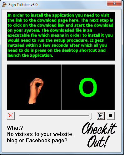| Free Fingerspelling Tutor Software: Sign Talkster Posted: 23 Jul 2012 05:00 AM PDT Sign Talkster is an effort to help all those people who have the disability to hear. This free fingerspelling software is simple which is commendable as it displays the letters by action of hands and helps you to learn fingerspelling. It can well be used to teach people having the disability to hear all the alphabets of the English language. Using this is pretty simple and the simplicity which it comes with makes it a good offering and helps you to learn fingerspelling easily. Installing Sign TalksterIn order to install the application you need to visit the link to the download page here. The next step is to click on the download link and start the download process on your system. The downloaded file is an executable file which means in order to install it you would need to run the setup procedure. It gets installed within a few seconds after that all you need to do is press on the desktop shortcut and launch the application. You can also try Fingerspelling Tutor to learn fingerspelling or try Valodas and Lingoversity to learn new languages. Using this fingerspelling softwareOnce you launch the application you would see a blackish interface with text at the top. Below that you have two black areas where each of them represent the window for the sign language and the text which it represents. At the bottom you have the play button along with the option to change the speed at which each text is presented through the sign language. Now you could type out the entire text that you want the software to play in terms of the sign language or just copy in some texts from the concerned file. Once you have the text in the black space at the top of the window the next step would be to select the speed at which you wish the text to be played out. You need to drag the marker and place it depending on the speed you prefer. Finally when you have all the options setup you need to click on the Play button. Doing so would start playing the entire text that you wrote/pasted word by word. Each word would be shown as per the sign language of hands so that the reader has the clarity of the texts being written. For the people having the disability to hear and wish to learn the alphabets through the sign language this tool is one of the best around. Being simple yet effective makes Sign Talkster a great product for the people looking for such software. Related posts: