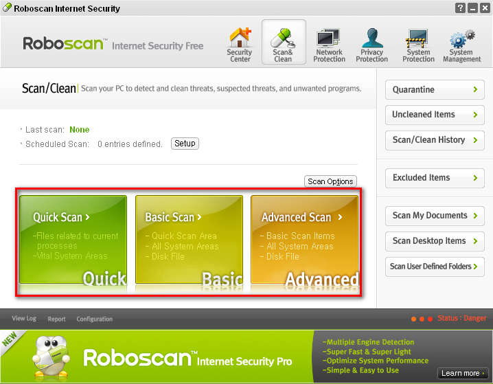 These are the basic options which are offered with the free version of Roboscan. If you want more features you’re gonna have to switch to one of the paid versions which also offer registry scanners, but system security tools and utilities that you get in the free version are more than enough. Detect malware with RoboscanThere are three scan methods that you get with Roboscan: