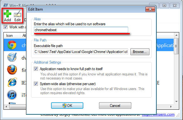 Create Windows Aliases for your Favorite Apps: Win+R Alias Manager Posted: 31 Jul 2012 03:30 PM PDT Win+R Alias Manager is a free application which you can use in order to control what kind of word triggers are used for starting programs in the Windows Run dialog that you get after hitting the Win+R keyboard combo. Many people don’t know that it’s possible to edit these trigger words, and even create new ones. It has been possible to do this type of thing ever since Windows 95, there just wasn’t a program which you could use to manage these triggers, or aliases as they are officially known, until Win+R Alias Manager came along. Since what Win+R Alias Manager does isn’t very complex, it doesn’t have an overly complicated interface, and it’s not a large application. List of installed computer applications can be seen right away after you open Win+R. Everything that you need to edit the application aliases can be found in the upper toolbar, right below the windows title frame. The official name for these Windows Run triggers would be aliases, that’s why the application has “alias” in its name, but a lot of people will understand the word trigger better, because that’s what they basically are. Creating your own Windows Run aliases is very easy with the help of Win+R Alias Manager, just click on Add, and fill in everything that’s asked from you. Check out email alias service from Hotmail for people having multiple email addresses. Free Windows Run Alias creator – Win+R Alias managerYou get the same window for adding new aliases and the same window for editing existing ones, window which can be seen on the image above. First line at the top, the one which is underlined with red is where the alias goes. As you can see we are editing Chrome trigger or should I say alias. Word that you enter here can be anything you like, we’ve changed the trigger word from the default chrome to chromethebest. There can be no spaces or any other special characters which you can use for the alias, if you were planning on using them. File Path field is where you select which application will actually be launched when the alias above is entered into the Windows Run field. You can leave rest of the options the way they were, activated. Remember to mark them if you are creating a new alias, because they make it available to all the users, or don’t, if you’re not interested in doing that. After you’re done configuring everything hit Win Key + R to start Windows Run which can be seen on the image above, enter the newly edited alias to the launch field and hit Enter. This will open up Chrome, with your newly created Windows Run Alias. You can also check out windows launchers reviewed by us. ConclusionWin+R Alias Manager can come in handy if you have an application which hasn’t created a Windows Run alias or trigger on it’s own, because with this free alias manager you can add it yourself, with just a few clicks of a mouse. Next to being able to add new aliases, you can also edit old ones, and you can do all of these things free of charge, because Win+R Alias Manager costs you nothing. Related posts: