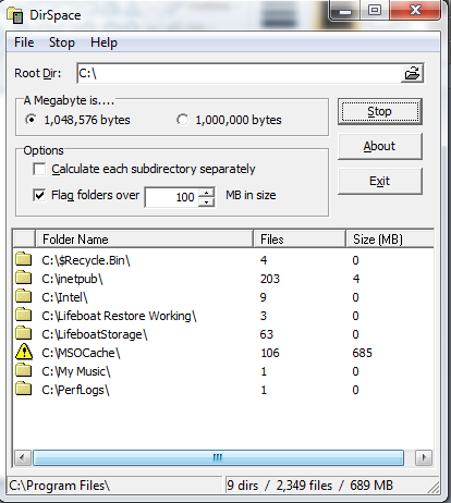 - Free Folder Space Calculator to Analyze Disk Space Used: DirSpace