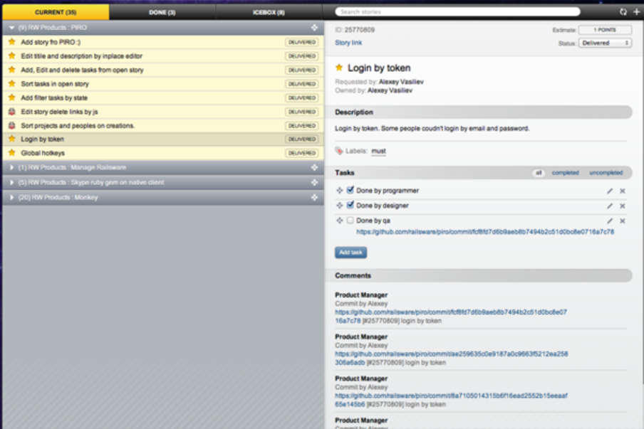 - Google Chrome Addon for Pivotal Tracker Project Management: Piro