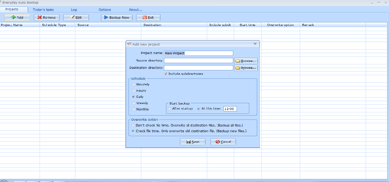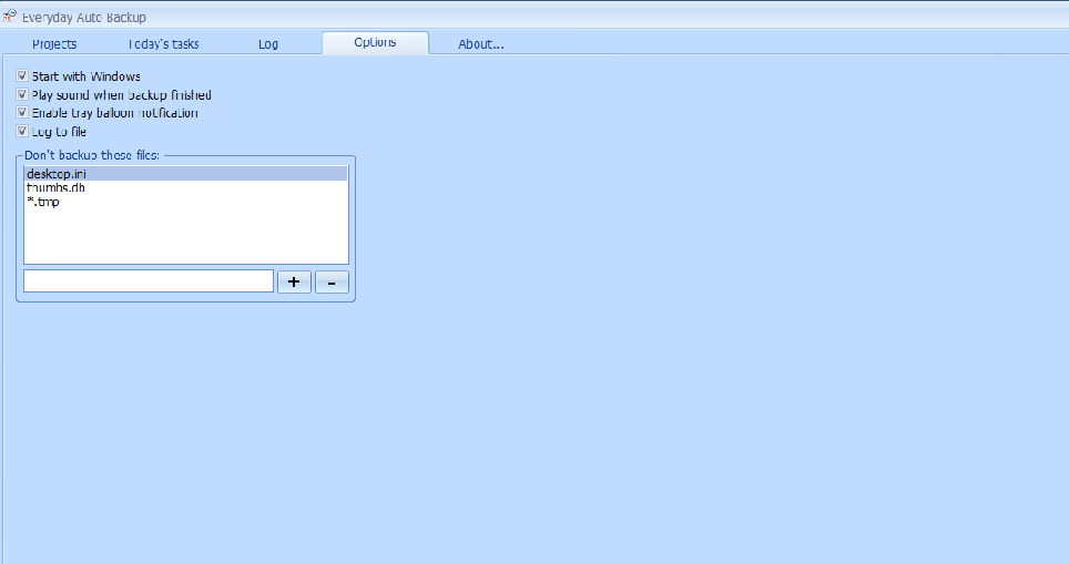 The main tab is the projects tab where all the information about your back up files are present. There is an add, remove, edit, back up now and exit option present in the screen. These options will help you in creating new projects and making appropriate changes. You can remove any project by clicking on the remove option and start the back up process by clicking on the back up option. The today’s tasks tab helps you have a look at the tasks being performed today. If you want to stop or remove the tasks then you can click on the stop or remove option. It is very simple to use and with all the information and the projects present on the screen you can easily have a look at the back up projects. This will help you take corrective steps and make additions as per your requirements. Then there is another tab named Log, this tab keeps all the information of the tasks being performed in the software. Right from the start to the end. For example if you started the software then the date and time will be present in the sheet. Then whenever you perform the next task it will keep a record and note down the time and date of that task. You can also see the options tab, where you can make changes in the settings of the software. If you want the software to start automatically with windows then you can select that option. The other settings in the options tab include whether you want the software to play sound when the backup is complete or whether you want the tray notification to be active or deactivated. All in all this Everyday Auto backup software is a user friendly software that can be used without any difficulties with variety of options present in it. Free Automatic Backup Utility: Everyday Auto Backup was originally published at I Love Free Software Related posts: