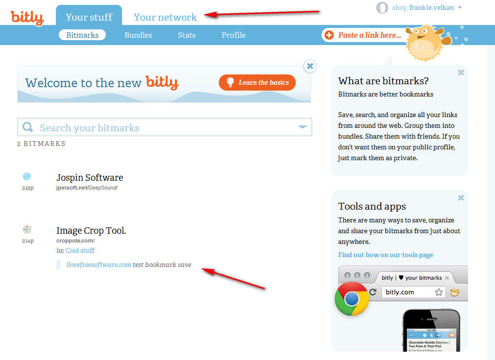 Users of Chrome can install an extension with which they can easily add bookmarks directly into Bitly. Other browsers can use the Bitmark, which is a browser bookmark that’s gonna prompt the Bitly’s bookmark saving dialog. Once that the bookmarks are created, you should see something like this: Saved bookmarks will be listed chronologically, and when you hover your mouse over them, all of the previously mentioned tools will become available. At the top you have a search box where, if you have a lot of bookmarks, you can search them to find the one you’re after. By clicking on the Your network link you’re gonna see bitmarks that your Facebook or Twitter friends have posted, that’s why it was important for you to connect to Bitly with them. ConclusionBitly offers a wide selection of bookmark management tools which you can use to have a better overview over interesting things that you come across on the internet. The search function allows you to easily find the bookmark that you’re looking for, and you also get shortened links of the URLs that you’ve posted. Free Social Bookmarking and URL Shortening with Bitly was originally published at I Love Free Software No related posts. |