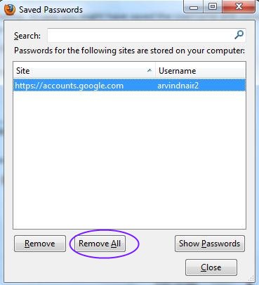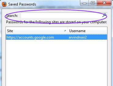 Note: The search option allows you search password for a specific website. If you are a regular user of Firefox browser and almost all your passwords are stored with it then we suggest you to set a master password. So that others accessing your computer do not gain access to your passwords through the password manager.