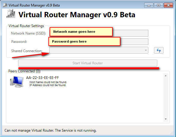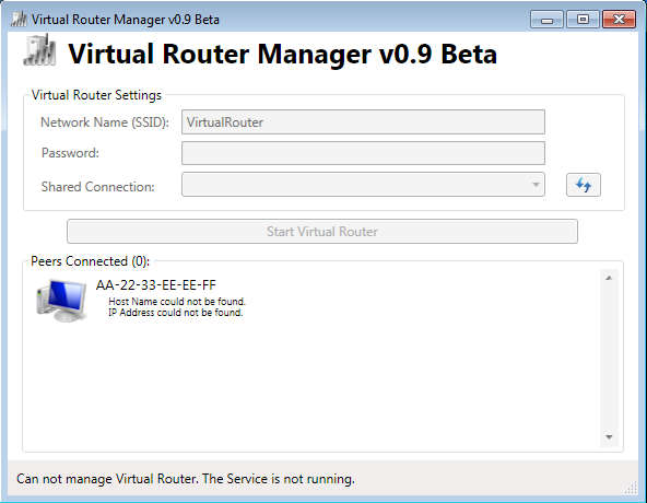 Some of you might be thinking why would anyone create a wireless network if they already had a wireless network since we said that other wi-fi internet connection can be shared. Well sometimes when the signal is weak, creating an additional wireless network can extend the range of the signal, so that you can have internet access. You may also check out My Router and mhotspot reviewed by us. How to Setup a Wireless Network on your PC with Virtual Router Manager:For the most part though you’ll only be sharing wired connections like DSL, or perhaps high-speed mobile connections with other wireless devices that you have in your household, assuming that you don’t have an actual wireless router. Check that first, you might not even need Virtual Router Manager. Write in your network name, password and down below in the drop down selection menu called Shared Connection, you’re gonna have to select the internet connection that you want to use. On the image above the selection is blanked out because there’s no active internet connections. On your computer however your DSL connection, mobile connection, either one of these should be detected by Virtual Router Manager and will be placed in the list of active connections. When you click on the Start Virtual Router button, the wireless network is gonna get created and you can try and find it with the devices with which you want to connect wirelessly. Conclusion:Creating wi-fi hotspots is very easy with Virtual Router Manager. All it takes is a few mouse clicks, some keyboard typing and you’re all set. Created wireless networks are gonna work just like those that you get from wireless routers. Since a wireless stick is cheaper than a router, if you’re looking for a quick solution to turn your Windows PC into a wi-fi hotspot, Virtual Manager is just the thing you need. Application is completely free, there are no ads or any kind of annoying toolbar trying to get installed during its installation, so you lose nothing by trying it out. Turn Your Windows 7 PC Into A Wi-fi Router: Virtual Router Manager was originally published at I Love Free Software Related posts: