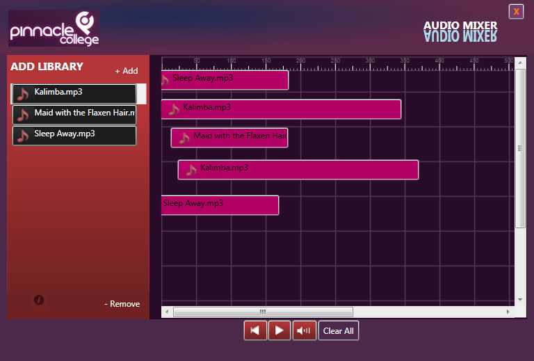 Audio Mixer was developed by Pinnacle which is an educational institution that specializes in various audio related courses. There aren’t any kind of advanced effects that you can apply while learning how mix tracks with Audio Mixer, you’ll only be able to add effects with the audio track library that you use. Here’s are a few pointers to help you get started. How to Mix Audio with Pinnacle Audio Mixer?Before you’ll be able to do anything, any kind of mixing, you first have to load files into the library, you can do this by clicking on the Add button which can be seen in the top left corner of the window. Standard open window will appear, where you can select the files that you want imported. Selected audio files are gonna appear in the left sidebar. To add them on the editor which can be seen on the right side, simply drag and drop them from the list. This is where the fun starts, each one of the audio files that you add will be represented with a rectangle. How large it will be depending on how long the audio track is. There are time indicators available at the top of the application. Mix them in the order that they have to be played and then hit the play button down below to hear the music that you’ve created. Conclusion:As you can see Pinnacle Audio Mixer is a very simple learning utility which you can use to grasp the basics of audio mixing. Everything is very easily understandable, and you can use it and easily understand what this free audio mixer does even if you don’t have a lot of experience. Free download. Learn How To Mix Audio Tracks With Pinnacle Audio Mixer was originally published at I Love Free Software Related posts: