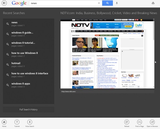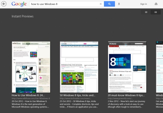 | Posted: 16 Nov 2012 01:00 PM PST Google Search is a free Windows 8 Google Search app available under the ‘Tools’ category of Windows 8 App Store. Here, in this Google Search Windows 8 app, you can easily access the very popular Google Search engine, find answers to all your queries, perform voice search, every thing right at your fingertips. You can easily browse through Google applications such as Gmail, Google Plus, YouTube, Google Reader, Google Translate, Blogger, Maps, Books, and more. Yup.. the widely used search engine (Google) is now available as a Windows 8 app, at zero cost. It provides precise and accurate information for all type of searches. You can check tutorial, go through browsing history, sign in to your Google account, adjust settings according to your preferences and do many other activities without touching the browser. The app is just what you would expect from the developers. Lets get into the details: Nice Use-Interface:What I really like in this Windows 8 Google Search app is its amazing full-screen interface. As you open the app, it will let you go through the tutorial first. This helps you understand how to use Google Search in Windows 8. Next, a beautiful screen will appear showing a large Google Search bar along with ‘History’, ‘Applications’, and ‘Voice Search’ options. At the top right side, you will see a ‘Sign In’ link and a down arrow to view other options. To start searching, just click in the search box and begin typing the keywords, results will appear instantly. You can also browse search results without going to the browser to open any website. For this, just click on flip icon given at the top right-side of the screen. You can start with new search anytime, by clicking in the search box. As you click on a search result, it will get opened in the app itself. Also, as you right-click anywhere on the screen, it will allow you to access through other options such as Reload, Find in Page, and Open in Browser. You can also share a web page with your friends via Email. There is ‘Settings’ icon that lets you adjust Language, Time, and Results. If you click on Google Logo, it will instantly take you to Google Search engine homepage. Now, to view all your recent searches, just click on ‘History’ given on the home page. To go through more options, just right-click anywhere on the screen. Here, you will find ‘Full Search history’, ‘Home’, Tutorial’, and ‘Voice Search’. Well, all in all, it’s an amazing addition to your Windows 8 Apps list. Let me quickly point out the key features of this Google Search Windows 8 app below. Also, check out our posts on Android Google Search, Search Engine Apps for iPad. Key Features Of Windows 8 Google Search App: