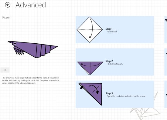 | Windows 8 Origami App: Just Origami Posted: 19 Nov 2012 01:00 PM PST Just Origami is a free Windows 8 Origami app available under the ‘Books & Reference’ section of Windows 8 App Store. With step-by-step simple origami instructions, you can learn how to fold Origami. This Origami app for Windows 8 brings you diagrams with each step to help you understand the process in a better way. You can learn a number of different folds including bear, waterlily, windmill, fox, caterpillar, grasshopper, prawn, bat, ghost, and many more. There are three different categories: Easy, Normal, Advanced. Origami is a kind of activity that not only keeps your mind calm, but also improves your memory skills while making some new piece of art using colorful papers. You can pin to start your favorite origami step-by-step instructions to become a master in creating it. Also, you can share the steps with others via Email or Brag about your favorite Origami. What I Liked About this Origami App for Windows 8:What I really loved about this Origami Windows 8 app is its beautiful tile-based interface. As you open the app, you will find three different categories: Easy, Normal, and Advanced. The ‘Easy’ category brings you very simple Origami folds such as simple bear, heart, pencil, plane, etc. The section is for kids and for the beginners. Next is ‘Normal’ where you will find Origami instructions for waterlily, frog, bat, ghost, etc. While the last one ‘Advanced’ section brings you step-by-step instructions for creating crane, iris, prawn, maple, and more. As you click on a tile, a beautiful big screen will open where you will find steps to create a selected Origami. To view all the steps, you need to scroll towards right (using the mouse or the horizontal bar). Each step has been clearly explained with the help of a figure and written text. Right-click anywhere on the screen to access more options such as Brag, and Pin. Also, check out our featured posts on Origami Diagrams Websites, Drawing Apps For Android. Key Features Of Windows 8 Origami App: