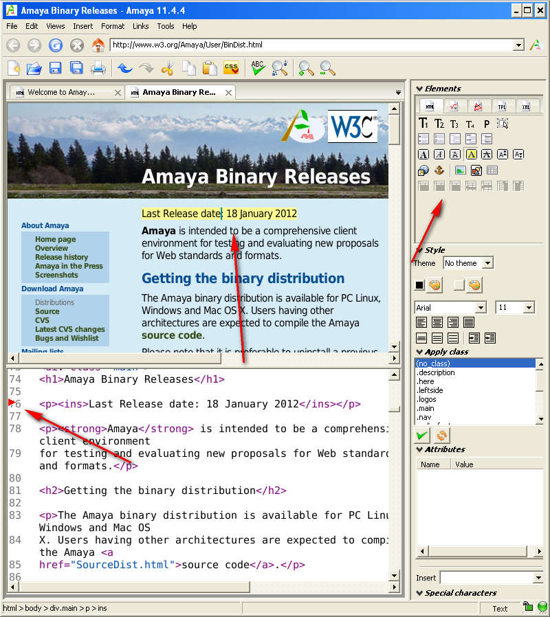 Even though we mentioned that with the help of Amaya’s graphical HTML editor, you’re not gonna have problems remembering HTML tags, that doesn’t mean that you don’t have to know how HTML works. Some basic knowledge is necessary, it’s always a much better idea that next to graphical editing you rely on manual code editing as well, because otherwise a lot of junk code is gonna end up in the websites that you create, added by the graphical editor. Similar software: medit, Tag Controller, Write Monkey. How to use Amaya – online and offline HTML editorA lot of people are probably wondering how exactly does online file editing with Amaya work. It basically goes like this, you enter the address of the online location where you want to edit the HTML files, after which they are gonna be opened as editable documents in a new tab: Notice the address bar at the top, it’s an actual website and we are making changes to the document hosted on that website. To activate the source code view, you’re gonna have to click on View >> Source code. As you click on places in the graphical preview of the document, down below in the source view, you should also see a change in the code. In the right toolbar you have elements, styles, attributes and other HTML objects that you can add to websites. Saving is when the magic happens: You’ll be asked for the server access information, so that files can be accessed and saved. You didn’t have to open an FTP client, or anything like that, simply open a website and start editing, when done, enter the login information and changes will be saved. Next to this useful feature, Amaya has amazing HTML editing functions, download it and try it, it’s free and it works on Windows, Linux and Mac. Free Graphical Live Website HTML Editor: Amaya was originally published at I Love Free Software Related posts: