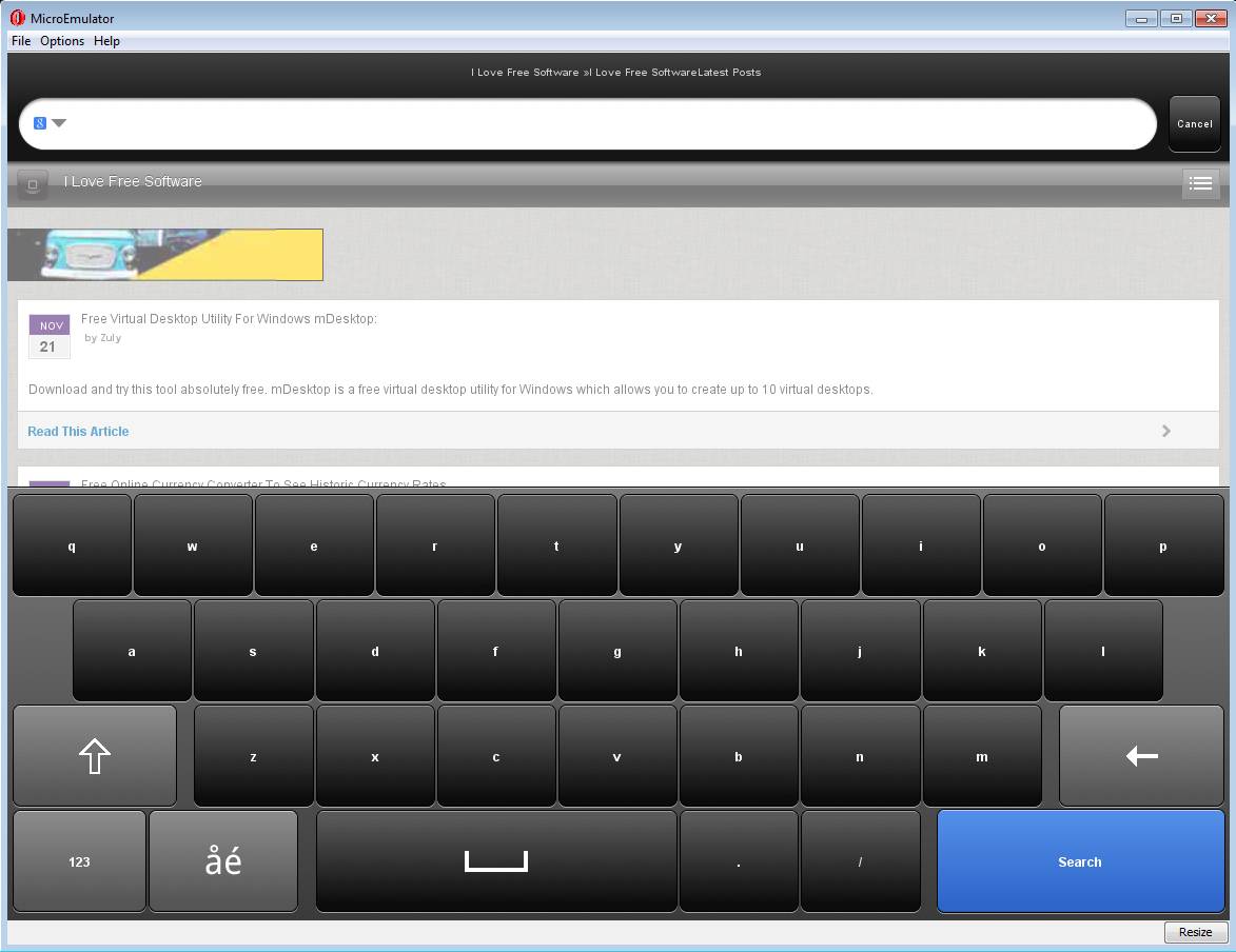 To use it on your desktop PC, you first have to install it. Once installation completes, icon will be placed on your desktop. Run it and you should be greeted with the control panel which can be seen above. Now decide which version you want to run. Entire interface is emulated, you can use your mouse and keyboard, navigational controls are at the bottom of the window, just like they are when you’re using Opera Mini on your mobile phone. When you open Opera Mini 6.5, you’re gonna be greeted with much advanced browser, you get an on-screen keyboard, more modern interface, but keep in mind that more bandwidth and traffic is spent by the newer version of Opera Mini. If you plan on using it to cut down the internet bills, use the version 4. ConclusionOpera Mini PC is very useful for a number of different reasons, especially if you wish to cut down your internet bills without compromising secure browsing. Try it and see just how useful it can be. You may also read our post on Opera Mini browser for Android. Click here to download Opera Mini PC. Download Opera Mini PC Free was originally published at I Love Free Software Related posts: